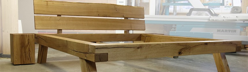 Hingucker! Bett aus massiven, gelagerten Eichenbalken!
