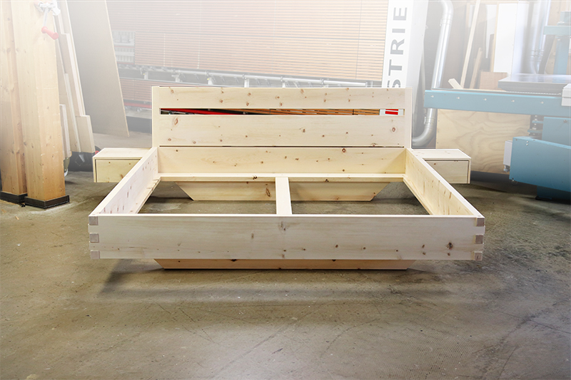 04.4 Bett aus reiner, massiver Zirbe, Zirbelkiefer